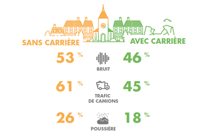Toutefois, parmi les maires ayant un avis positif sur la carrière, près de la moitié (45%) ont exprimé des attentes sur la limitation des nuisances, notamment le bruit et le trafic des camions, et 39% espèrent davantage de communication et de concertation avec le public. En ce qui concerne le trafic routier, « il y a effectivement nécessité à rapprocher les lieux de production des lieux de consommation. Il n’y a plus de carrières dans l’agglomération bordelaise alors que c’est la collectivité la plus consommatrice de matériaux en Gironde, et pourtant la ressource est présente », note Laurent Richaud.